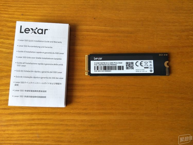 硬盘并不是很长,安装规格是2280,存储是由两个256G江波龙自封的镁光颗粒组成,采用了12nm制造工艺,这种支持读取速度5300MB/s的颗粒也不过是2022年3月才发布的,技术是很新的,硬盘的主控是慧荣SM2269XT。硬盘的贴纸上有额定工作电压和电流的标识,也有中国制造的字样。硬盘的接口是M.2的,这种接口相比SATA接口有更高的速度,因此M.2接口是会逐渐的普及的,取代SATA接口只是时间的问题。